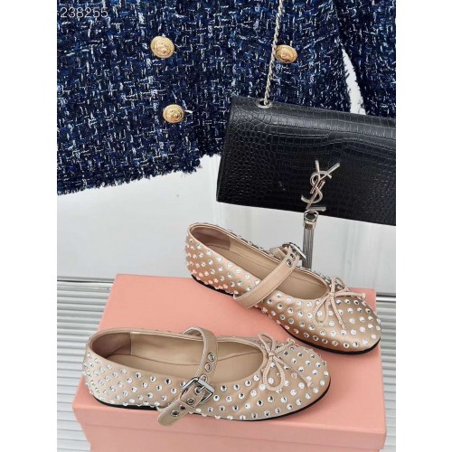 미우미우 여성 클래식 한정판 보우 디테일 플랫 슈즈